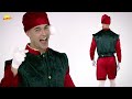 Grünes und rotes Elfenkostüm mit Hut für Herren